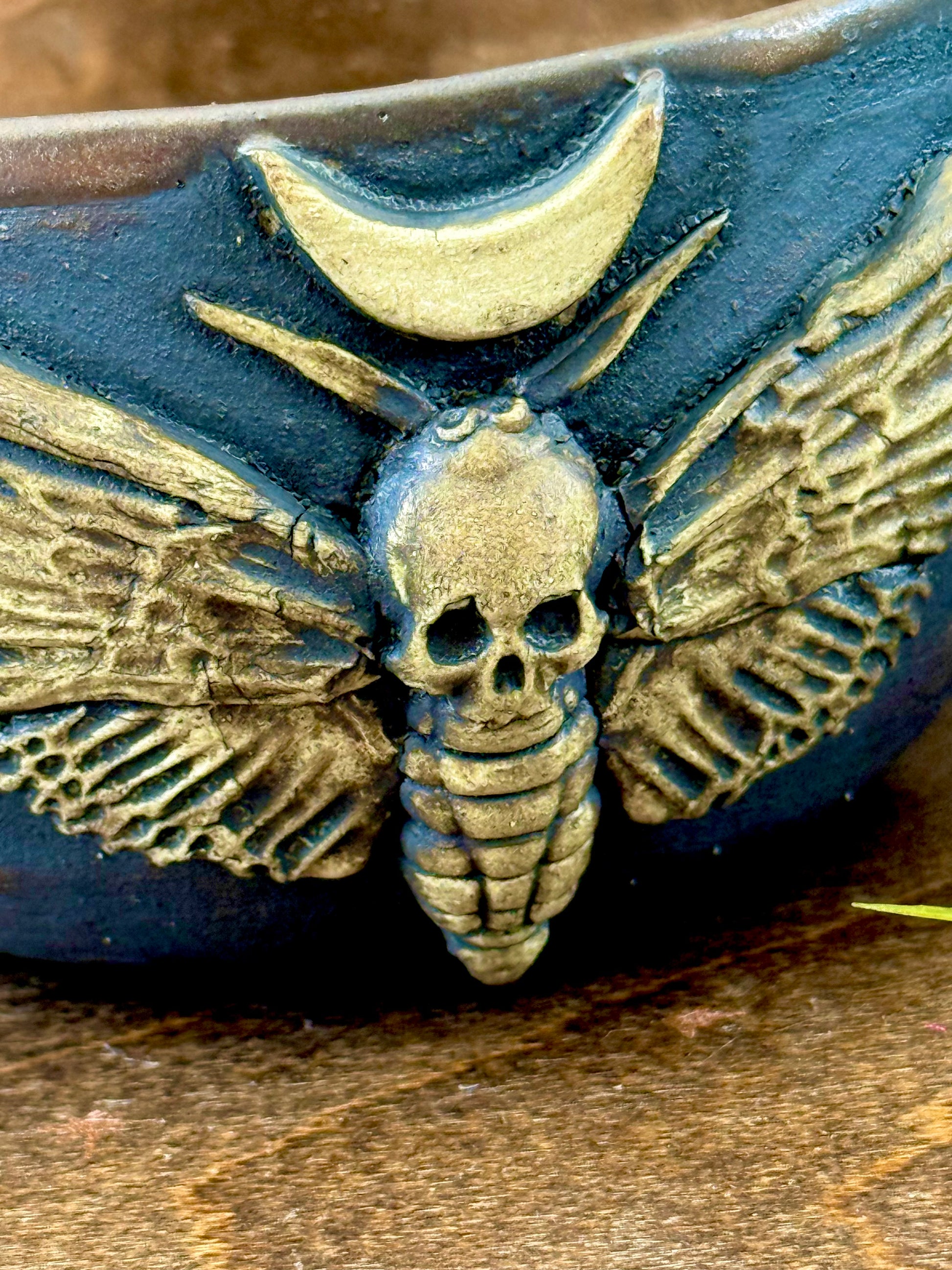 Hand-thrown on the wheel and finished in layered, earthy glazes, these ceramic pieces carry the feel of old-world craft and forest symbolism. Each piece is shaped by hand and adorned with raised botanical and folkloric elements—moths, moons, florals and ferns, and other woodland forms—bringing a quiet, grounded presence to any space.